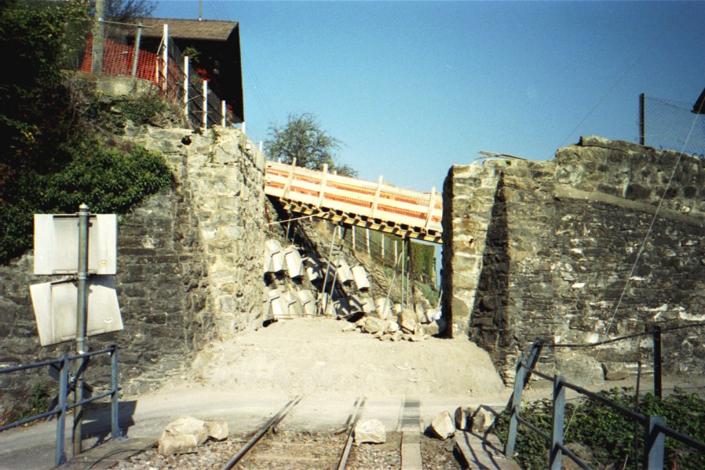 Plus de pont, on voit la passerelle provisoire