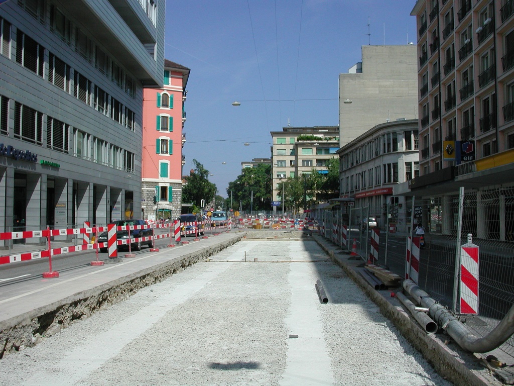 Rue de Lausanne - La plateforme prête à recevoir les rails