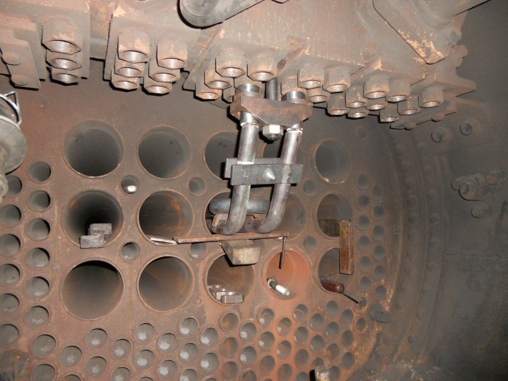 HG 3/4 3 BFD: Confection des nouveaux tubes de surchauffe - Préparation de la soudure des embouts côniques en utilisant l'emplacement définitif comme gabarit. |