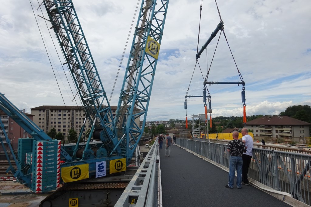 Manoeuvre de mise en place pour le démontage de l'ancien pont la nuit prochaine