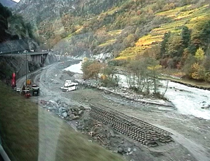 Neubrücke: Reconstruction de la voie après les inondations du 15 Octobre 2000