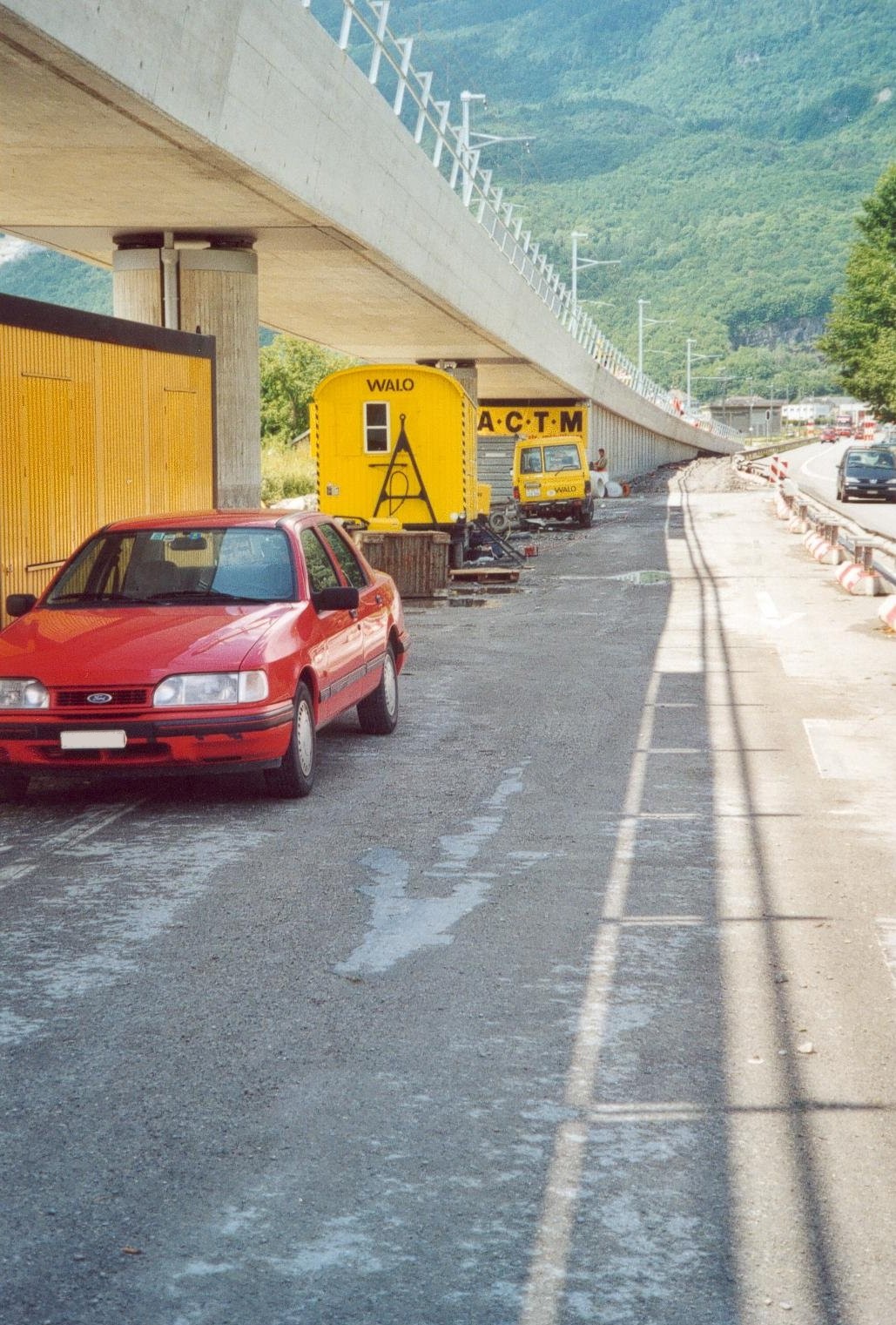 Chantier du pont ferroviaire sur le giratoire de la nouvelle route du Val d'Illiez