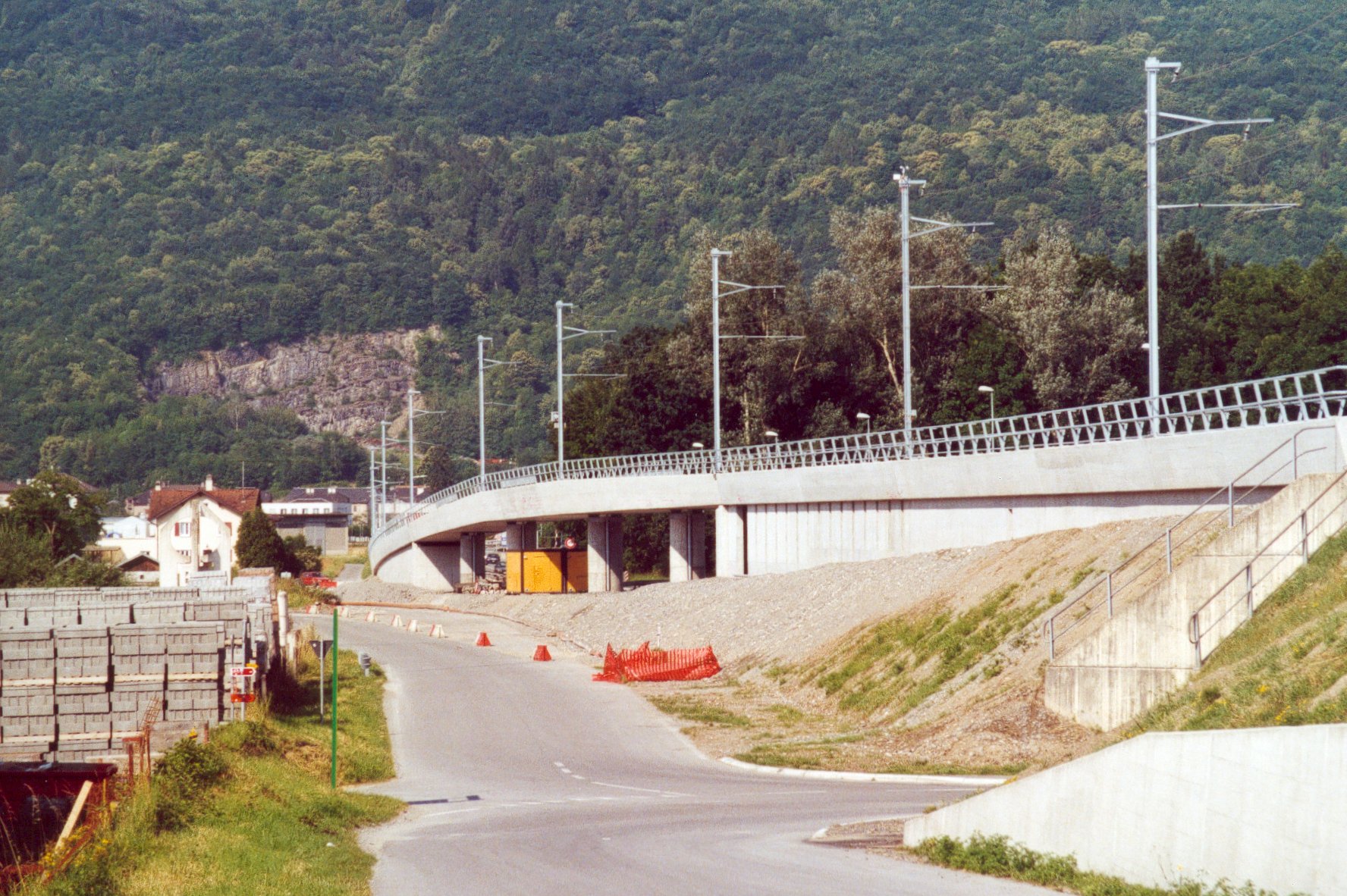 Chantier du pont ferroviaire sur le giratoire de la nouvelle route du Val d'Illiez