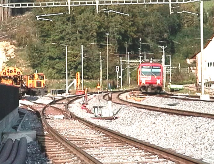 Vauderens: A gauche, les deux voies de la nouvelle ligne partent de la voie 1