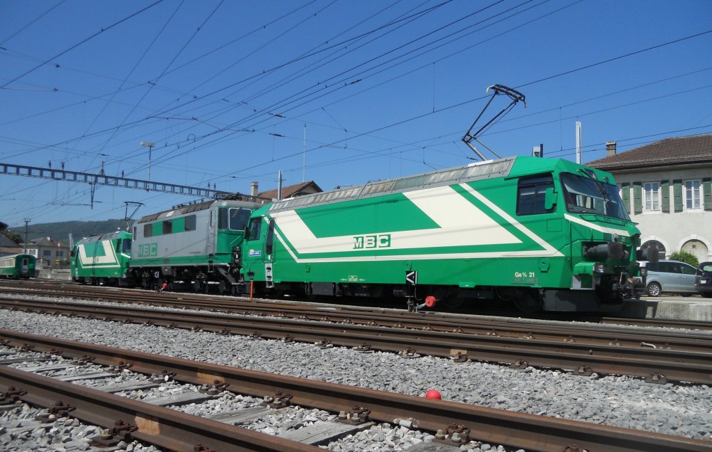 Bière - La 2e Ge 4/4 vient chercher la 420 - Les 3 locomotives du BAM ensemble !