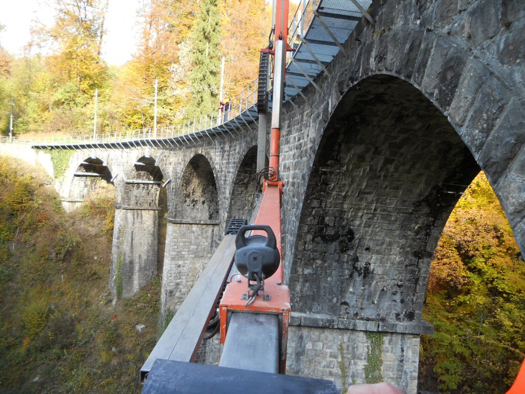 Viaduc de la Baye de Clarens - Inspection du viaduc avec le train nacelle du RhB