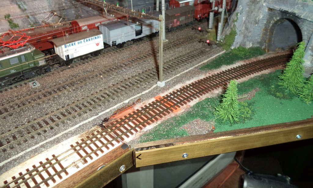 Boucle tour de pièce - Pose d'une voie à trois rails