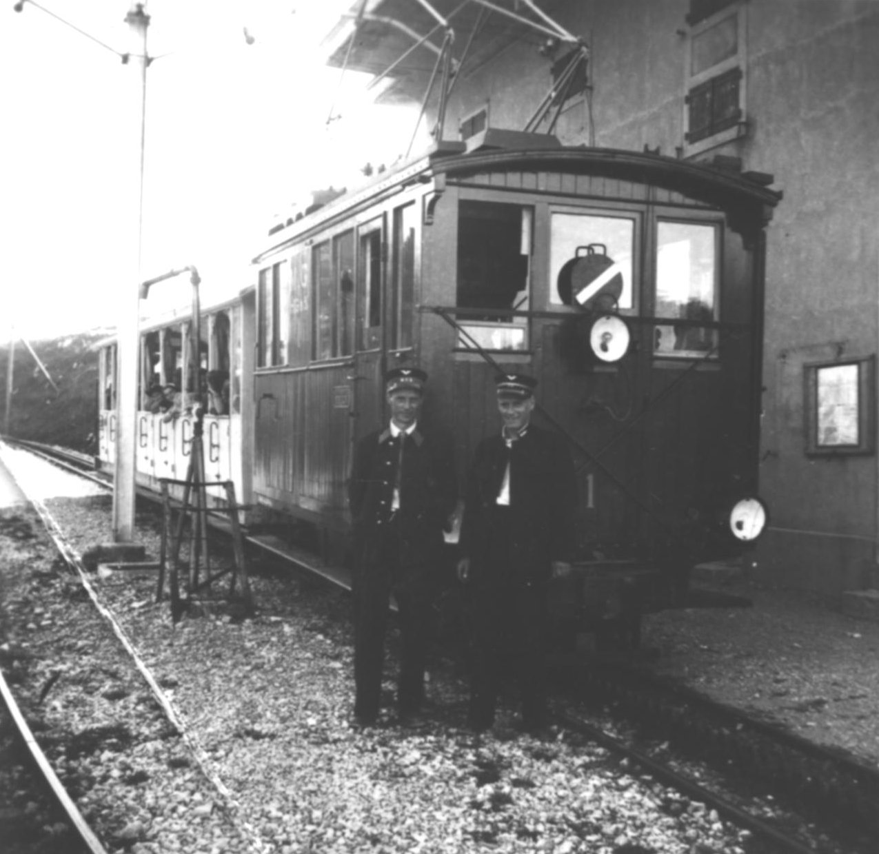 Devant la loc 1 MGl Georges et Ernest Aubort. Cette loc fut emportée avec le chasse-neige dans l'avalanche du 10 décembre 1965.