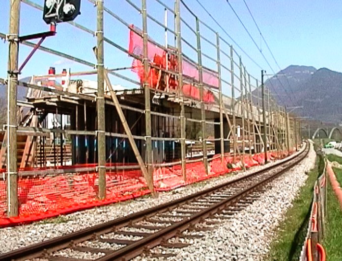 Chantier du pont ferroviaire sur le giratoire de la nouvelle route du Val d'Illiez