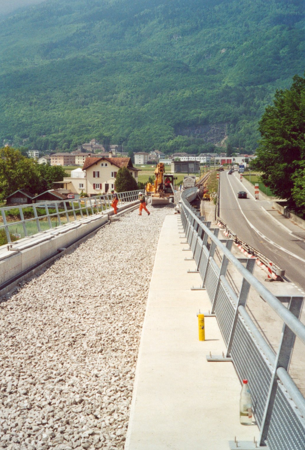 Chantier du pont ferroviaire sur le giratoire de la nouvelle route du Val d'Illiez