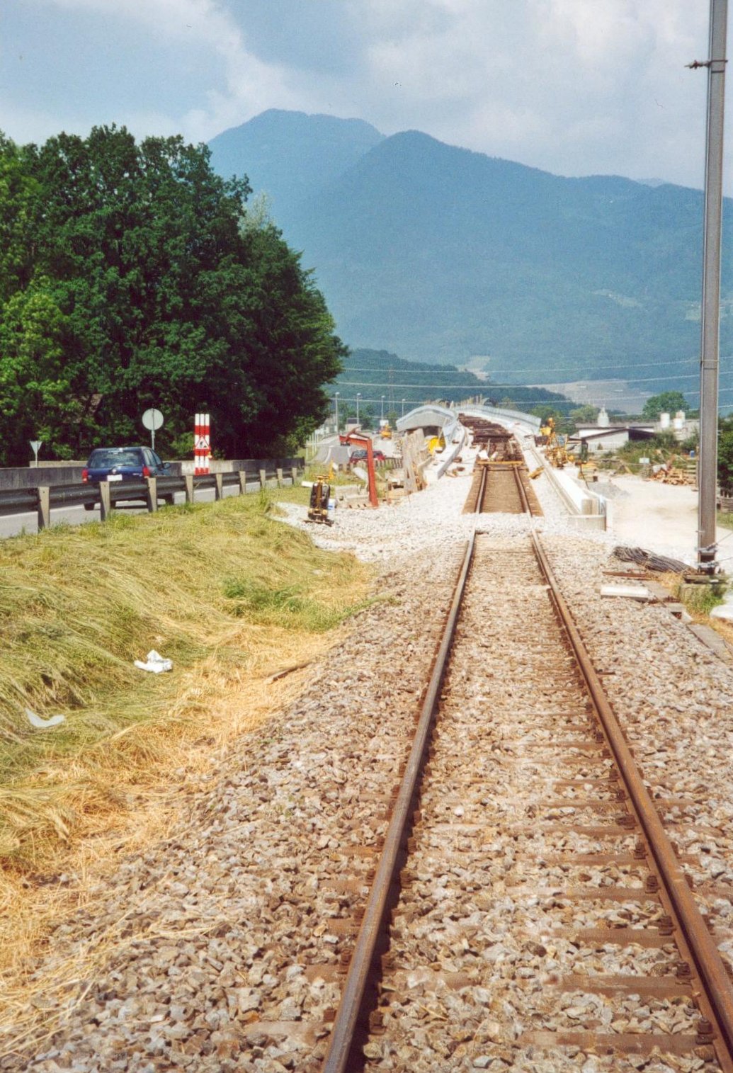 Chantier du pont ferroviaire sur le giratoire de la nouvelle route du Val d'Illiez